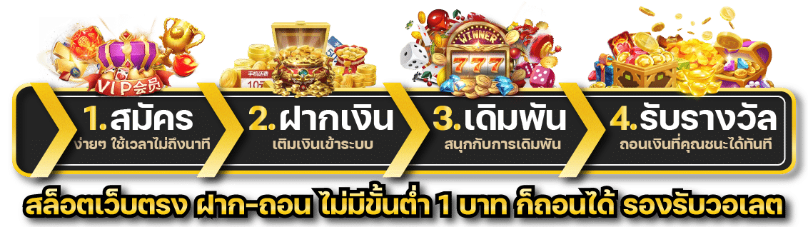ตอบ : - กรอกข้อมูลส่วนตัวผ่านหน้าเว็บ ยืนยันเบอร์โทรศัพท์ ผูกบัญชีธนาคาร รับยูสเซอร์และรหัสผ่าน เริ่มเล่นได้ทันที
